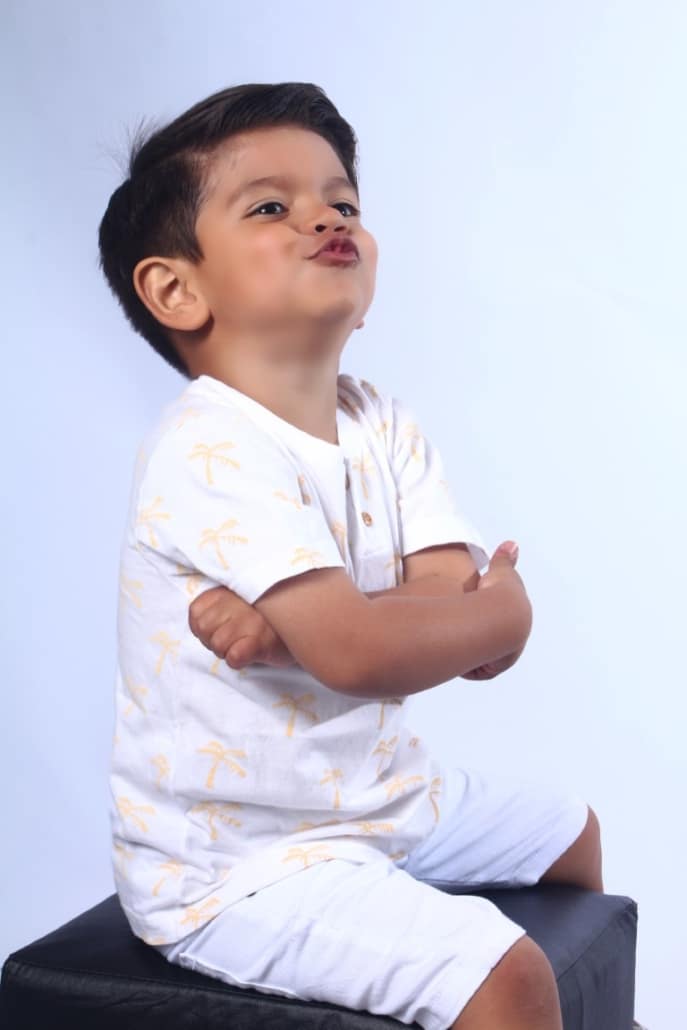 Mesmo tão pequeno, com apenas 4 aninhos, Théo já mostra um carisma natural diante das câmeras!